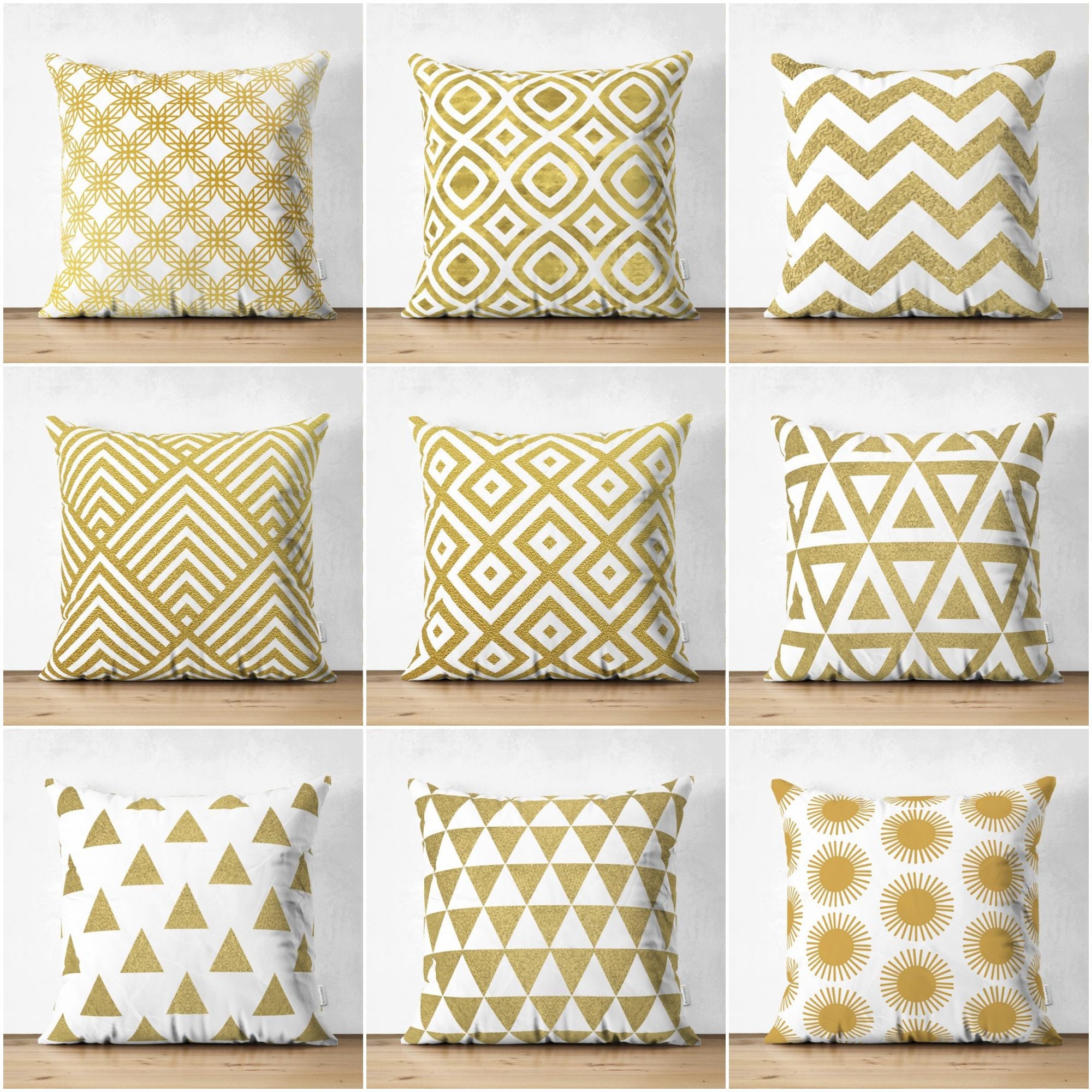 Gold Color Geometric Pillow Coverpsychedelic Suede Cushion Etsy